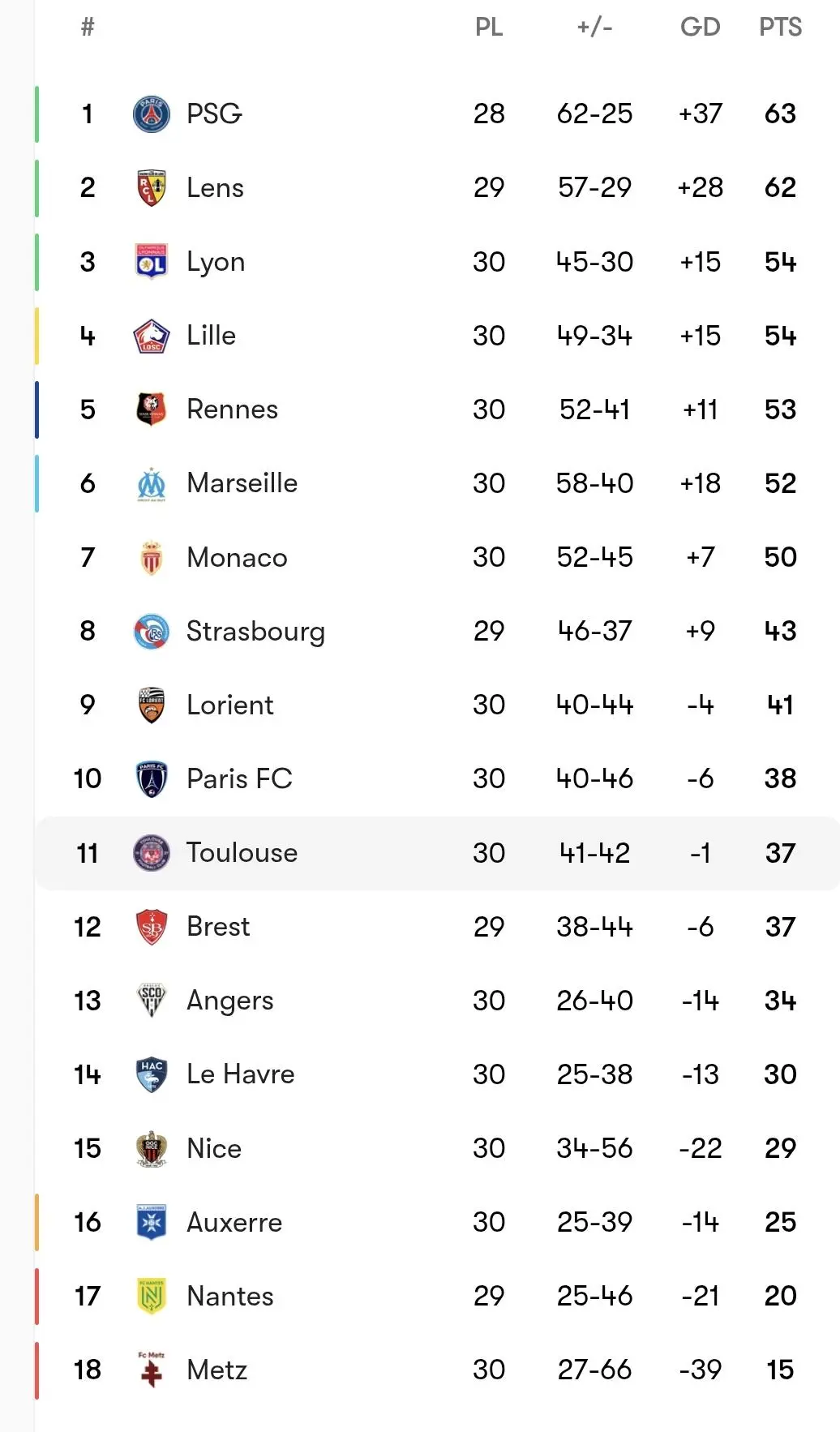 arrow-up11arrow-down1imageLigue 1 Standings after Matchday 30.lemmy.fediverser.ionerdmannerdB to FootballEnglish · 2 hours agomessage-square0linkfedilink